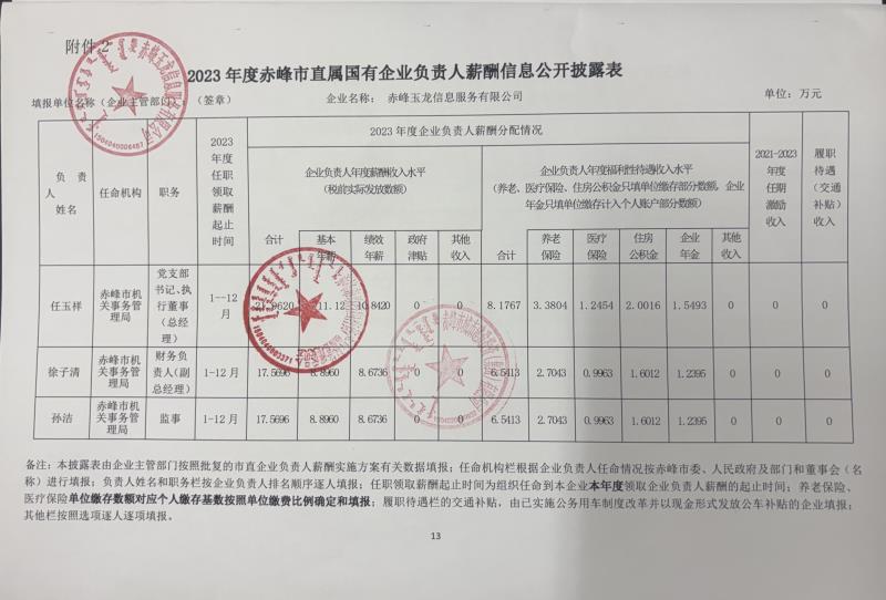 2023年度赤峰市直屬國有企業(yè)負(fù)責(zé)人薪酬(赤峰玉龍信息服務(wù)有限公司)