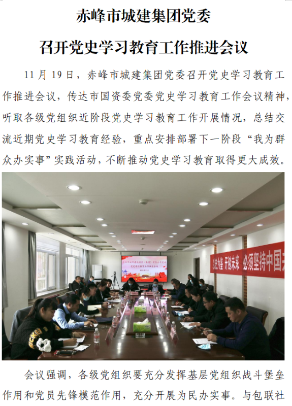 赤峰市城建集團黨委 召開黨史學(xué)習(xí)教育工作推進會議
