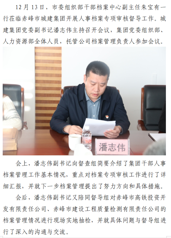 赤峰市城建集團 召開人事檔案專項審核督導工作會議