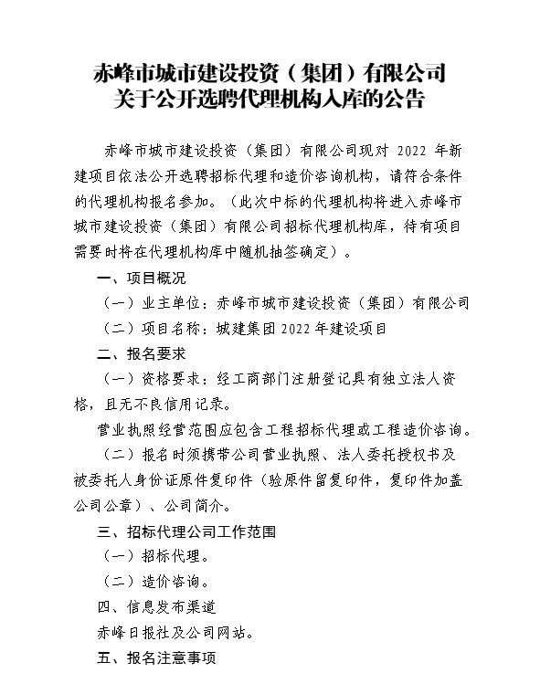 上一篇:赤峰市城市建設(shè)投資(集團(tuán))有限公司 關(guān)于公開(kāi)選聘資產(chǎn)評(píng)估機(jī)構(gòu)的公告
