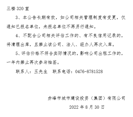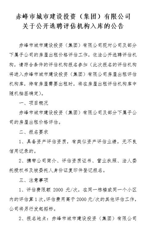 赤峰市城市建設投資(集團)有限公司 關于公開選聘評估機構入庫的公告