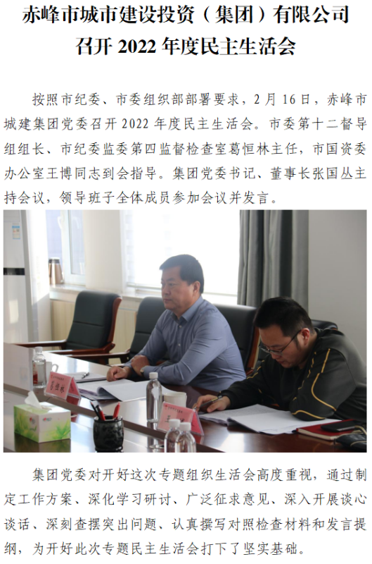 下一篇:赤峰市城市建設(shè)投資(集團(tuán))有限公司 機(jī)關(guān)黨支部召開2022年度組織生活會(huì) 和民主評議黨員大會(huì)